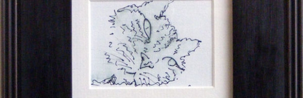 Created on white textured canvas card, this OOAK original miniature cat drawing is fashioned using pencil and tailored with black and green ink. Presented in a Larson Juhles solid wood classic style frame with an elegant black and grey lacquer finish, mounted behind ivory / Off white board, glass and ready to hang. Includes Certificate […]